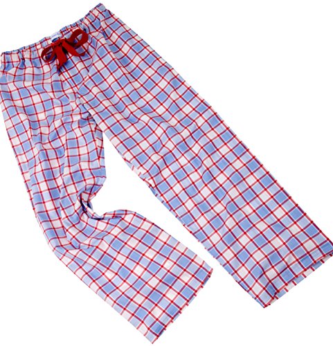 Best Seller! Pyjama Bottoms for Men (and Teenagers) in beautifully fine Egyptian cotton stripes or checks (110cm tall, Pale blue and red checks) Review
